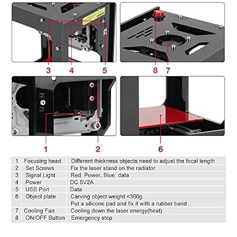 【Sicuro e duraturo】Filtro magnetico acrilico per prevenire danni al laser agli occhi; Ventola incorporata per facile dissipazione del calore; Creazione di immagini incise senza residui in eccesso e perfette e più sicuro per prevenire l’incendio; 108 viti e struttura in lega per renderlo forte e stabile; Corpo con materiale acrilico ad alta durezza, telaio addensato a 5 mm, che rende più resistente; Aggiornamento del diodo laser, miglioramento della qualità della testina laser, maggiore durata