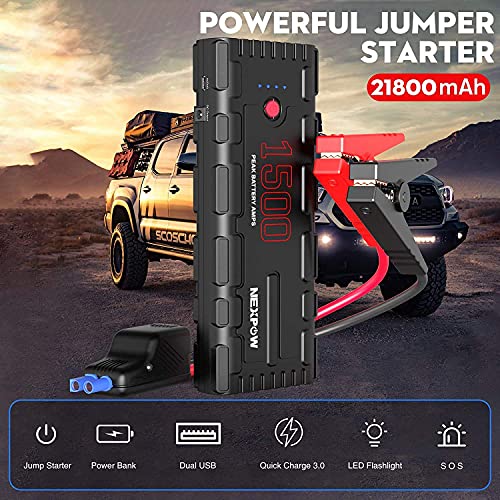 🚗STARTER BATTERIA AUTO POTENTE: L’avviatore per auto potenziato NEXPOW G17 utilizza una batteria ai polimeri ad alta velocità, che è più forte e più stabile degli avviatori ordinari. Ha una corrente di picco di 1500 A e una super capacità di 21800 mAh, che può facilmente avviare un veicolo a 12 V (fino a 6,5 litri di benzina o 4,0 litri di diesel) fino a 30 volte. Può anche avviare completamente camion, motociclette, motoslitte, SUV, tosaerba, navi e yacht in pochi secondi.