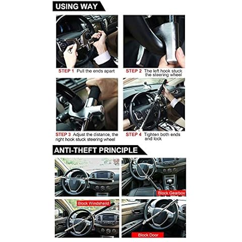 2.A very solid bar with a foam covered handle to keep from scratching your steering wheel. It’s not only a security car lock, also a safety hammer. The lock can protect you and your vehicle all the time.