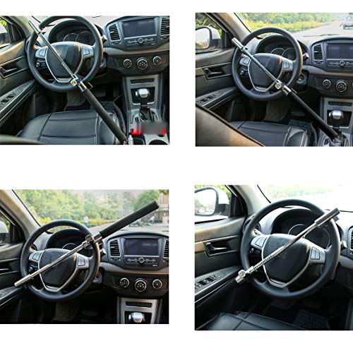 ngzhongtu Bloccaggio del Volante Bloccaggio antifurto Sicurezza del Veicolo Blocco Rotante Regolabile Blocco del Volante telescopico per Auto con 3 Chiavi – Argento e Nero