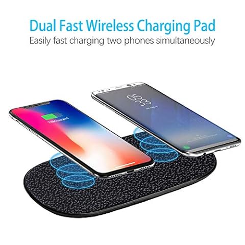 【Caricamento di 2 telefoni contemporaneamente】 Questo doppio pad di ricarica wireless consente di ricaricare due telefoni contemporaneamente.