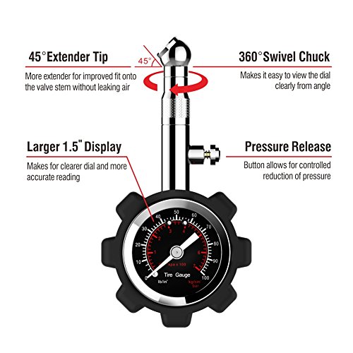 Questo indicatore meccanico del pneumatico è tarato con standard ANSI B40.1 Grade B (± 2-3%) di precisione internazionale per garantire la corretta pressione pneumatica fino a 100psi