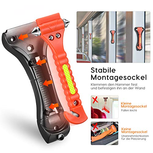 OMORC Martello di Emergenza, 4 x Martello di Sicurezza di Emergenza con tagliacintura, Coltello per Cintura, Martello di Sicurezza, Martello di Emergenza per Auto, Autobus, Rosso