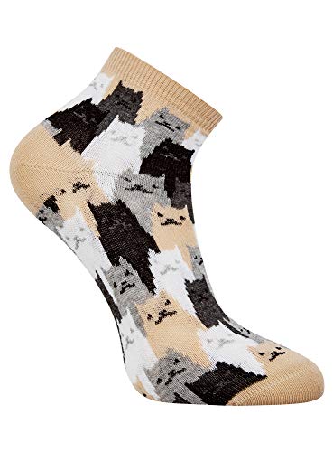 Set da sei calzini con stampa a gatto, a righe e monocolore