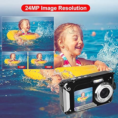 ♞【TELECAMERA IMPERMEABILE DA 3 METRI】Questa macchina fotografica subacquea scatta foto da 24,0 MP e video HD a 1080p, tutti sott’acqua fino a 3 metri (10 piedi). È una fantastica fotocamera digitale per lo snorkeling, il campeggio, il nuoto e le immersioni durante le vacanze.