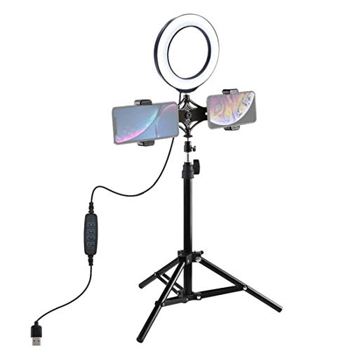 Allinterno della confezione una luce circolare, un treppiede, un mantieni cellulare.