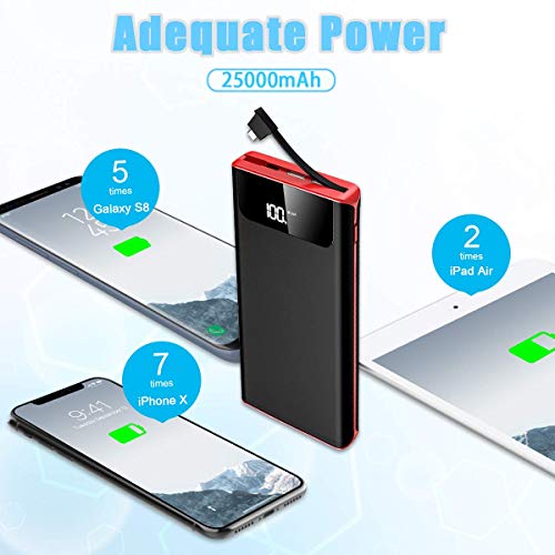 Grande capacità di ricarica con questa batteria esterna da 25000mAh in grado di ricaricare un iPhone per circa 7 volte, un Galaxy S8 6 volte, un iPad Pro 2 volte e altri device Android varie volte. È quindi molto versatile ed utilizzabile per esigenze di lavoro o per avere un supporto durante le vostre attività all’aperto.