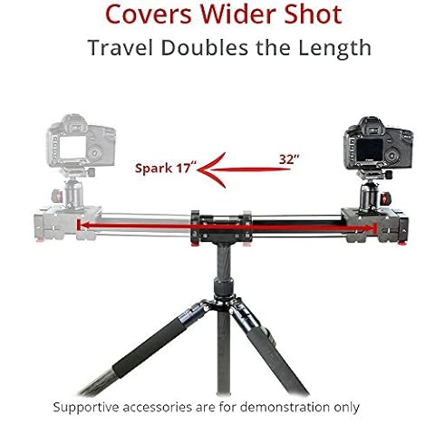 Il dispositivo di scorrimento della fotocamera compatta e portatile 17′ copre la doppia distanza di viaggio di 32″ con sistema a cinghia che espande il range di scorrimento e lo rende ideale per viaggiare