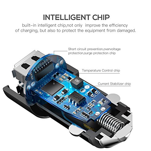 Ricarica Intelligente: Questo Caricabatterie Telefono per Auto è dotato di tecnologia di ricarica intelligente che è in grado di rilevare automaticamente ogni dispositivo collegato per caricare alla massima velocità in base alle esigenze, evitando di sovracorrente