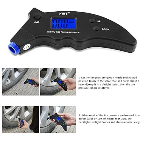 FACILE DA USARE: Collegare l’ugello del manometro con la valvola del pneumatico per misurare la pressione del pneumatico in modo rapido e preciso