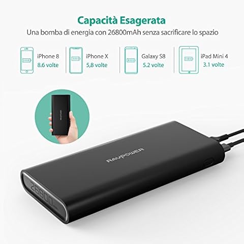 1 Caricabatterie Portatile RAVPower 26800mAh (Modello: RP-PB067)