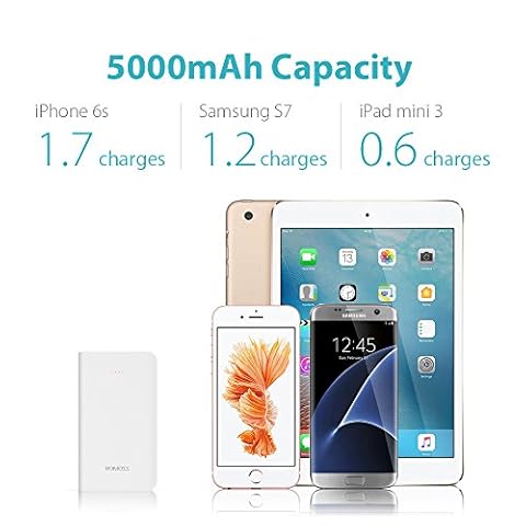 Grande capacità: la batteria esterna da 5000mAh è compatibile con tutti i dispositivi Apple, Samsung e la maggiore parte degli Smartphone, è in grado di caricare un iPhone 8 o iPhone X circa 2 volte, un Galaxy S9 circa 1 volte o un iPad Mini 3 volte.