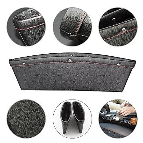 5:Progettazione universale – adatto a maggior parte delle auto, non c’è bisogno complessa installazione, è sufficiente far scorrere tra tasca del sedile e la console fino a trovare un posto accogliente bello, questo set di prodotti dotati di box di stoccaggio in pelle a due posti (uno per il conducente e un altro per il passeggero ).