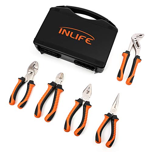 Set Pinze 5 Pezzi InLife per Slittamento, Pompa dell’acqua, Tronchese Laterale, Combinato, a Becchi Lunghi con la Custodia ad Alta Qualità