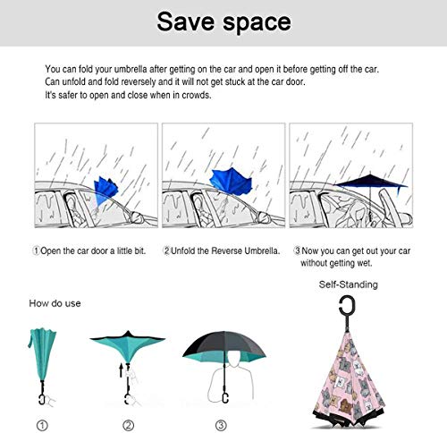 Design invertito: la superficie dell’ombrello verrà piegata in modo intelligente. Pertanto, quando sali e scendi dall’auto, non si bagnerà.
