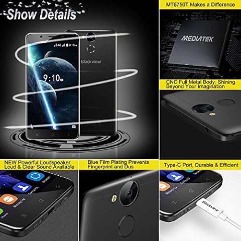 Smartphone Android – Blackview P2 Smartphone Android 6.0 MT6750T Sim Libero Quadrato 4G LTE Schermo da 5.5 Pollici FHD 2.5D con Grande 6000mAh Batteria 4GB RAM 64GB ROM 8 + 13MP Telecamera Riconoscimento di Impronte Digitali OTG, Dual Sim Corpo Pieno del Metallo Sbloccano il Telefono Cellulare – Nero