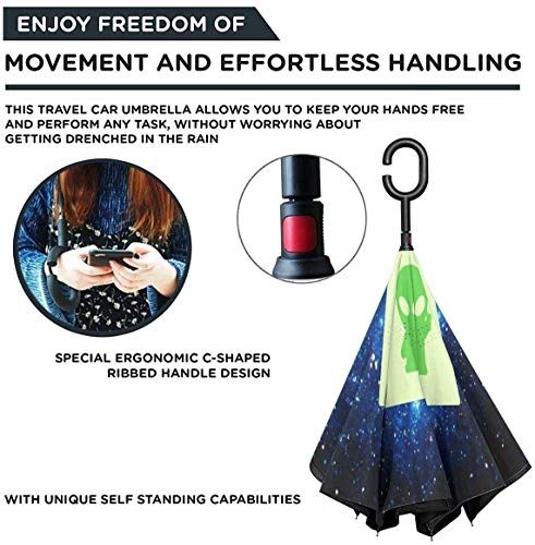 Space Alien UFO Funny Car Inverted Umbrellas Auto Open UV Protection & Rain Ombrello antivento per auto Pioggia Uso esterno