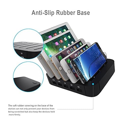 ➥ [STAZIONE DI RICARICA]: Con 5 porte di ricarica USB ( 2-porte–2,4A e 3-porte–1A), la stazione di ricarica multi-dispositivo consente di caricare fino a 5 USB dispositivi contemporaneamente, come smartphone, tablet, fotocamere , cuffie ecc.