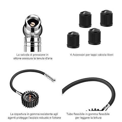 ▲Confezione include – 1 x manometro pneumatico, 4 tappi a valvola x, 1 x Manuale d’uso, 1 x garanzia carta, 2 anni di garanzia