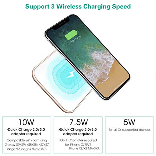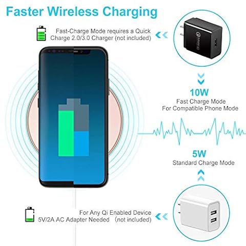 ▲ [CARICA RAPIDA FINO A 15 W] Con la nostra tecnologia avanzata, può fornire fino a 15 W di uscita per la modalità di ricarica rapida e ricarica fino a 2 volte più veloce rispetto alla merda wireless standard. e ha compatibilità universale per i telefoni Qi e quelli con Qi disponibili ma richiedono un ricevitore Qi / custodia esterna e possono essere caricati fino a quattro millimetri dalla parte superiore del caricatore