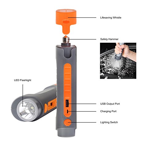 Strumento di emergenza Multifunzione: ad es. illuminazione di emergenza, telefono cellulare charging-up, lampeggiante, bussola magnetica, pioggia Proofing, ferro, taglio coltello, cinture di sicurezza e martello di sicurezza.