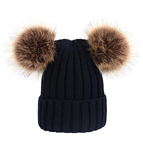 1 cappello in inverno con cappello Bobble con doppio pom pom Pom per le ragazze delle donne (nero)