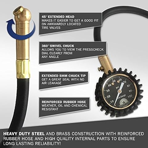 Mandrino girevole a gradi e tubo flessibile di demarcazione Air Pressure Gauge: il manometro indolore raggiunge tutti i tuoi veicoli ‘valvole da qualsiasi angolazione.
