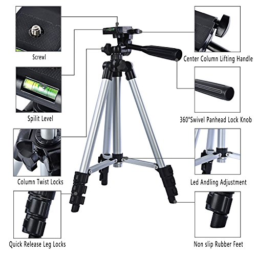 Tra cui : il treppiede può essere piegare fino a 14,5 in/370mm, viene fornito con un sacchetto di trasporto, una clip del telefono.