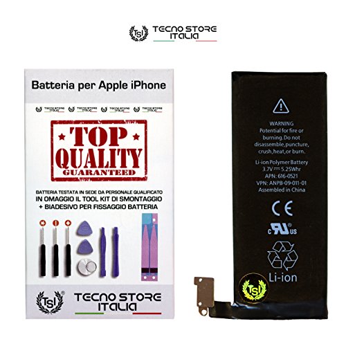 La Nostra confezione contiene: 1 Batteria per iPhone 4, 1 Set di attrezzi, 1 Libretto di istruzioni per lo smontaggio e il montaggio della Nuova Batteria TSI®. Importante: non siamo responsabili per eventuali danni causati durante l’installazione della batteria.