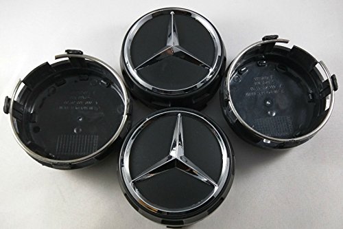 Set di 4 Tappi Coprimozzo rialzati per Mercedes Benz, colore Nero, diametro 75mm / larghezza 32mm