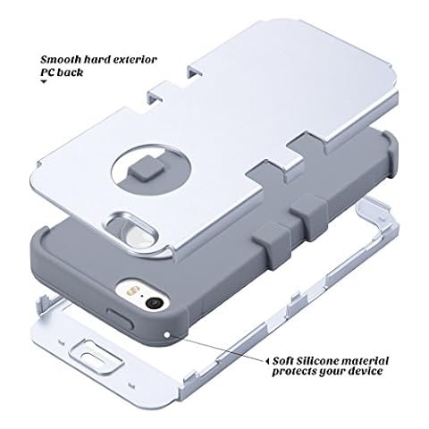 3in1 antiscivolo cover iPhone 5/5S/SE fatto per essere usato facilmente e offrono una protezione robusta. Progettato come un caso 3in1 HYBRID, la morbida pelle interna in silicone ammortizzante offre protezione per le piccole gocce, e il guscio esterno rigido del PC dà la protezione da graffi e sporco.Progettato come 3-parte facile clip di disegno, è sufficiente inserire il vostro telefono nello strato interno in silicone interno, posizionare la parte anteriore e posteriore pezzi duri al telefono, li scattare insieme, offrendo la vostra protezione del telefono senza problemi.