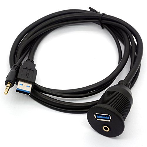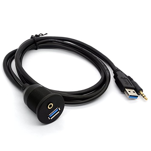 1Meter 3-Feet USB 3.0 e 3.5mm Maschio a USB 3.0 e 3.5mm AUX Femmina Flush Mount Dash cavo di prolunga con staffa di montaggio è progettato per auto, barca, moto, bici, ect rimorchio. Il cavo del supporto usb è dotato di una maggiore efficienza di trasmissione dati e l’efficienza di caricamento rapido, 3,5 millimetri aux consente il trasferimento audio.