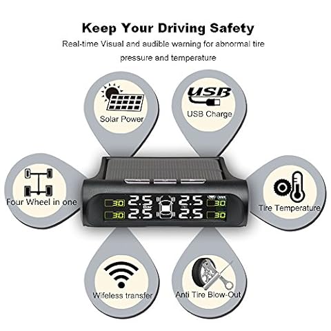 Ezonetronics Universal Solar Power TPMS Sistema di monitoraggio della pressione dei pneumatici wireless con 4 sensori…