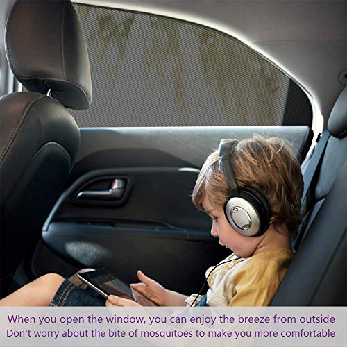 Tendine parasole auto lineamenti: 1. Il parasole e creato con una maglia durevole, flessibile e trasperante. La visera non limita l’uso di finestre, lasciando cómodamente aperta per l’aria fresca. Keep fastidiosiomsetto fuori. 2. Maggioe protezione e privacy per il sedile posteriore passeggeri. 3. Il parasole non rovina la verniciatura dell’auto o gli interni. L’installazione non potrebbe essere più semplice. Chiudi la porta per fissarlo, è così sottile e leggero che neanche ti accorgerai della sua presenza. 4. Anche migliorare l’efficienza del carburante riducendo il sistema di condizionamento dell’aria del carico dell’automobile nei caldi periodi estivi. Specifiche: Materiale: Nylon Colore: Nero. Dimensione: Circa 126 x 52 cm (L x W) Pacchetto: 2 x Tonalità della finestra auto