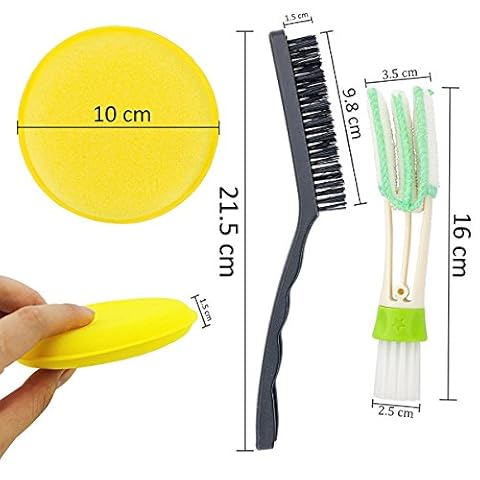 ♦ detailing Brush Set ideale per voi per pulire l’ interno e l’ esterno dell’ auto, le ruote, il cruscotto, la spazzola, la bocchetta dell’ aria, gli occhiali, i sedili e altri luoghi piccoli.È possibile utilizzare due extra ceretta spugna per pulizia auto, il dettaglio, risciacquo.