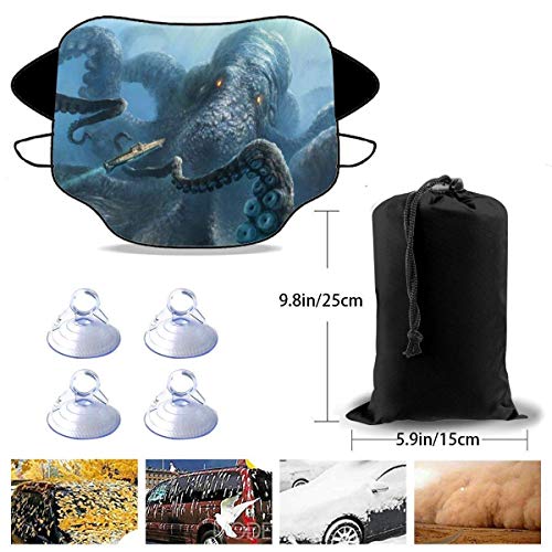 Wohenhao Octopus Universale Resistente Parabrezza Parasole Copertura per Neve per Qualsiasi Veicolo Estate Inverno Pieghevole Impermeabile Uso Tutto L’Anno Dimensioni 57,9×46.5 Pollici