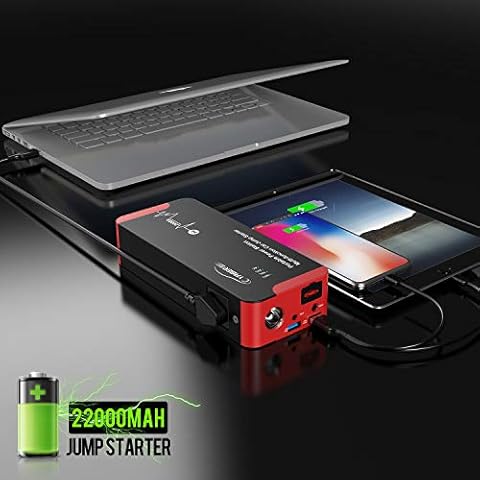 🚗【1200A POTENTE JUMP STARTER】 Questo avviatore di emergenza auto può avviare veicoli a 12V (adatto a tutti i veicoli a benzina o 8.0L diesel) in pochi secondi con una corrente di picco di 2000A e una batteria con capacità di 22000mAh. Adatto per la vostra macchina, pick-up e motociclo, etc.